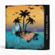 This beautiful 3 ring binder features a tropical island in the ocean with hibiscus flowers and black silhouettes of palm trees against a beautiful sunset. Customizable text on front and spine to personalize it.