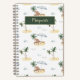 Pretty tropical pattern with palm trees and a bench in the shade of summer island sets off a cute notebook you can add your name to. Great for a vacation or adventure journal or creative writing.