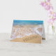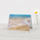 Vacation text in beach sand with turquoise ocean water for thank you to host/hostess.