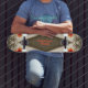 Feel the Tropical Vibes! Inspired by skateboarding's origins of surfing on sidewalks, surf, islands and sand are incorporated in this skateboard design. Brown with hints of sand and orange hibiscus flowers,this skateboard has a Hawaiian Island feel that is ready for you to personalize with a Name. For a wild ride or as Art, this boardskate is truly unique.