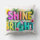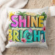A vibrant and cheerful Pillow design featuring the phrase "Shine Bright" surrounded by tropical elements like palm trees and hibiscus flowers. The bold typography and bright colours create a positive and energetic look, perfect for summer vibes.