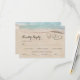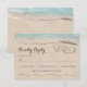 Beach destination wedding response cards featuring a summer tropical beach island background, a vintage sandy beach with two hearts in the shoreline, your initials and a wedding menu rsvp template.