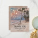 Vintage beach destination thank you cards featuring a romantic sunset tropical beach setting with lush palm trees and string twinkle lights.