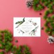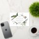 This wedding invitation features watercolor palm tree leaves, banana leaves, exotic tropical leaves, gold leaves with a gold diamond shape frame, and a green & gold tropical pattern on the back. Perfect for tropical, destination, summer, beach weddings, or other similar events.