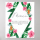 Tropical Palms Watercolor Bridal shower invitation. Design features an watercolor elegant bouquet of classic beach watercolor greenery and flowers, including blush pink hibiscus, orange and blue bird of paradise, green greenery and dark green palm leaf.