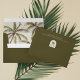 Invite your guests to your beautiful beach wedding with our boho tropical beach wedding envelope design. Design features our hand-painted watercolor palm trees with a custom palm tree monogram. Our boho tropical wedding envelope is perfect for a beach theme or destination wedding. Design & artwork hand-painted by Moodthoogy Papery.