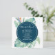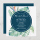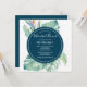 Chic tropical rehearsal dinner invitation in a unique square format features a border of elegant painted watercolor florals with lush botanical foliage and greenery. Personalize with your night before the wedding details in modern hand lettered script and traditional sans serif lettering in white over a blue background. Invitations reverse to rich navy blue solid colour. Perfect for garden, summer, destination or beach weddings. To see more designs like this visit VG Invites at www.zazzle.com/vginvites