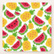 Tropical Watermelon and Pineapple Pixel Pattern Square Paper Coaster