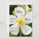 A marriage is the start of "new beginnings". The Plumeria or also known as Frangipani, is the Hawaiian symbol of "positivity" and "new beginnings". A unique wedding invitation featuring a close up photograph of a white Plumeria flower with tropical leaves and buds behind it. In Hawaii, this flower is used for making lei necklaces because of their shape and sweet fragrance.
