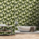 A tropical light yellow and green leaf pattern with buoyant light yellow blooms.