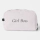 Sur ce sac cosmétique minimal est un élégant design de fleur de lotus argent où à l'avant vous pouvez personnaliser l'avant avec un nom ou logo ou garder comme il est avec le mot patron fille