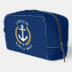Un sac personnalisé, à thème nautique, cosmétiques, toilettage et kit de toilette pour vous garder des articles de voyage organisés et sûrs. Ce design comprend une ancre de bateau sur mesure avec des feuilles de laurier de couleur or et une étoile d'or avec un texte riche lisant "Capitaine" (ou autre rang/titre désiré) et votre nom ou nom de bateau. Les couleurs sont bleu marine et or sur le blanc ou modifier le design et facilement changer le kit à n'importe quelle couleur désirée. Fait un grand cadeau.