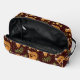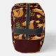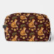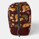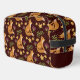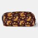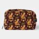 A charming pattern of seated orange foxes surrounded by yellow and purple flowers, green leaves, and dotted accents on a rich burgundy background.