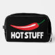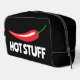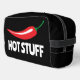 Hot Stuff drôle épicé rouge cayenne piment Kit Dopp. Modèle de typographie amusant pour la conception de sacs d'articles de toilette épicés. Ajoutez votre propre nom, monogramme ou citation amusante / disant. Idée cadeau personnalisée pour les hommes et les femmes.