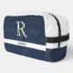 Trousse De Toilette Texture en cuir bleu Monogramme blanc Nom Kit Dopp