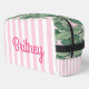 Trousse De Toilette Tropical en bande rose et blanche | Personnalisé