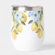 Trouvé son principal Squeeze Personnalisé citron & Fleur Vin Thermal Tumbler pour la mariée à être! Doté de belles fleurs d'ardoise bleu azur et de citrons jaunes sucrés.