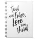 Le carnet inspiré/journal montrant l'expression "trouvent votre tribu, les aiment dur" en manuscrit noir de brosse avec une texture organique d'encre pour réaliser un authentique, regard marqué avec des lettres par main.