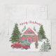 Truck Winter Snow House Christmas Tree Red Holiday Postcard