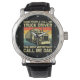 This heartfelt wall clock celebrates a truck driver's cherished role as a father. Against a black backdrop with a teal rim, a classic semi-truck silhouette is layered over a retro sunset of orange, yellow, and teal stripes. The words "SOME PEOPLE CALL ME TRUCK DRIVER THE MOST IMPORTANT CALL ME DAD" are displayed in a distressed off-white, emphasizing familial love. Customize frame colour in the design tool.