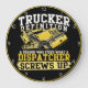 This humourous wall clock provides a witty 'definition' of a truck driver's crucial role. Against a black background with a yellow rim, it features a yellow semi-truck graphic and the bold text: "TRUCKER DEFINITION A PERSON WHO FIXES WHAT A DISPATCHER SCREWS UP". It's a perfect, lighthearted gift for any trucker who often finds themselves solving problems on the road. The design tool can also be used to add custom text if you want your name or company on this clock. You can customize the colour of the frame to any colour you desire by going into the design tool.
