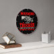 This bold wall clock serves as a clear warning from a no-nonsense truck driver. Against a black background with a red rim, it features a semi-truck and the direct message: "WARNING THIS TRUCKER DOES NOT PLAY WELL WITH STUPID PEOPLE". It's a straightforward and humourous statement for any trucker who values efficiency and intelligence on the road. The design tool can also be used to add custom text if you want your name or company on this clock. You can customize the colour of the frame to any colour you desire by going into the design tool.