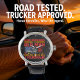 This patriotic wall clock powerfully celebrates the vital role of truck drivers in the United States. Against a black background with a pink rim, it features a blue semi-truck prominently positioned in front of a distressed American flag design. The words "TRUCKERS MOVE AMERICA" are boldly displayed, emphasizing the essential contribution of these professionals. This clock is an excellent gift to honor the dedication of American truck drivers. The design tool can also be used to add custom text if you want your name or company on this clock. You can customize the color of the frame to any color you desire by going into the design tool.