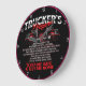 This heartfelt wall clock features a profound "Trucker's Prayer" for safety and guidance on the road. Against a black background with a pink rim, it displays two red semi-trucks at the top and the full prayer text, concluding with "KEEP ME SAFE & GET ME HOME". It's a thoughtful and spiritual gift for any truck driver or their loved ones. The design tool can also be used to add custom text if you want your name or company on this clock. You can customize the colour of the frame to any colour you desire by going into the design tool.