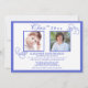 A classic blue and white invitation fit for a graduation celebration or any happy event. The white background features two photo windows with flourish swirls , framed in blue. The card is easy to customize with your wording, font, font colour and choice of six paper types.