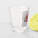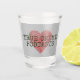 A shot glass for true crime podcast lovers everywhere, featuring a red fingerprint heart with typewriter style text.