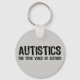 Autistics The True Voice of Autism.  Simple text only autistic rights design.  Black text on grey background.  Autism activism keychain.