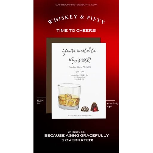 Cette aquarelle fantaisie, avec un verre de whisky charmant et de délicieux chocolats, ajoute une touche de magie à vos enveloppes d'invitation à 50e anniversaire ou à votre courrier quotidien.