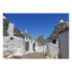 Photo print of traditional white plaster trulli houses with stone tiles in conical roofs in a small street in the town Alberobello, Itria Valley in Puglia, Italy.