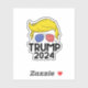 Donald trump 2O24 american flag glasses and trump hair funny quote sticker design for republican who supports trump on his political election campaign against kamala harris.