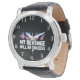 Arrived today. Beautiful watch just like it appears on the website! Printing is exactly as the template I created and asked for.
