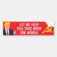 Trump helps political enemies take over the world Bumper Sticker. Political decals for car, truck, trailer etc. Personalize with your own ironic text or funny quote. Communistic Hammer & sickle logo.