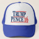 Buy a red white and blue Trump Pence 2016 campaign trucker cap and support Donald Trump for president! Featuring the words, Trump and Pence in a bold blue text, '16 in red, centred on the front of the hat. Choose from different hat colours and get yours today.