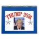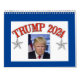 In TRUMP Campaign mode for 2024, this 12-month calendar for 2023 features one of our Trump designs for each month. This makes a unique Christmas gift for MAGA/Trump supporters. Backgrounds are in patriotic red, white, and blue. Go MAGA!