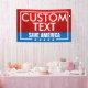 Bold red and blue with white stars and red rays! Trump 2020 banner flag merchandise with flair and festivity.