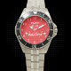 Has heft and feel of expensive stainless steel quartz watches. Good band with safety catch. I removed links, which is easy because engraved arrows show direction to push the linking pins. As always by this seller, the image (a railroad logo) is a perfect reproduction of my emailed image, and is precisely spaced and aligned.