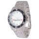 Has heft and feel of expensive stainless steel quartz watches. Good band with safety catch. I removed links, which is easy because engraved arrows show direction to push the linking pins. As always by this seller, the image (a railroad logo) is a perfect reproduction of my emailed image, and is precisely spaced and aligned.