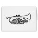 Simple black and white line illustration of a trumpet. Image available on various gifts and products.