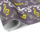 Fun musical pattern of Trumpets and little birds in purple and gold.