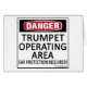 Danger, Trumpet Operating Area! Ear Protection Required! This gives them fair warning! See all our musical designs on on cups, mugs, tee shirts, sweatshirts, hats, and other gifts and clothing.
