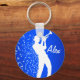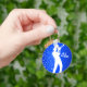 Blue and White Trumpet Player Silhouette Soaring Music Notes Customized Keychain