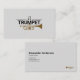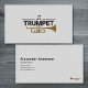 A business card featuring an illustration of a golden trumpet and musical note. Perfect for trumpeter, musicians, teachers, instructors, and concerts.