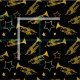 Cool fabric patterned with brass trumpets and stars. Perfect for trumpet players, and music lovers alike.