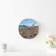 Trust God's Timing Quote Beach Wall Clock. Inspirational quote clock with a beach background (ocean, blue skies, sand) featuring the saying, "trust God's timing'.