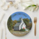 This paper plate features a quaint country church in Cornwall Connecticut with the message to trust in God.