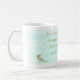 Proverbs 3:5 "Trust in the Lord" bible quote mug in calligraphy with birds & stars. Aqua background.